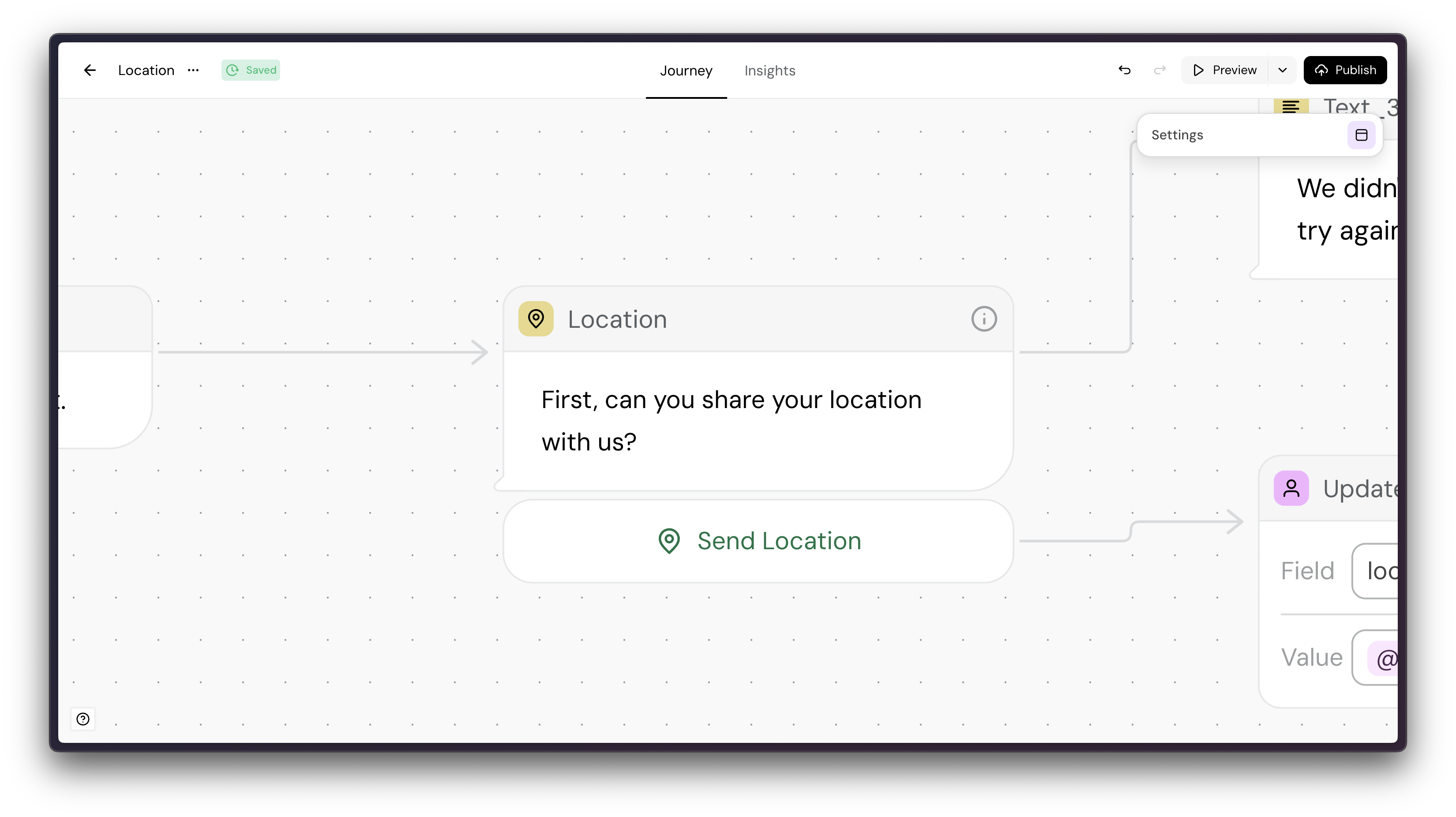 We're excited to announce a powerful new capability in Turn.io Journeys: native WhatsApp location requests. You can now request and collect users' locations seamlessly within your conversation flows—no typing addresses, no confusion, just one tap.