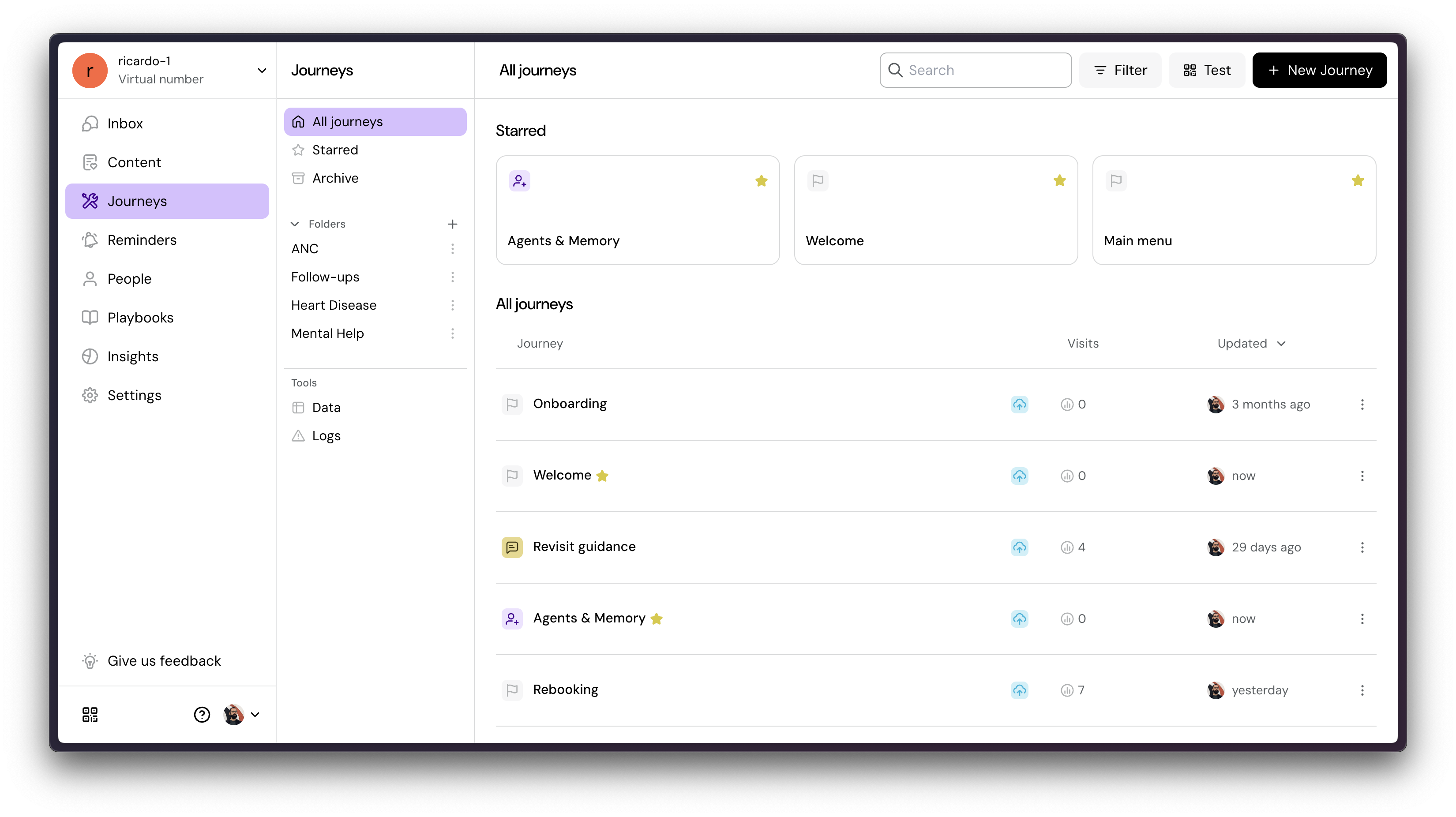 Starred journeys let you pin your most-used journeys to the top. Your critical journeys, like your main menu using Interrupting triggers are now one click away.