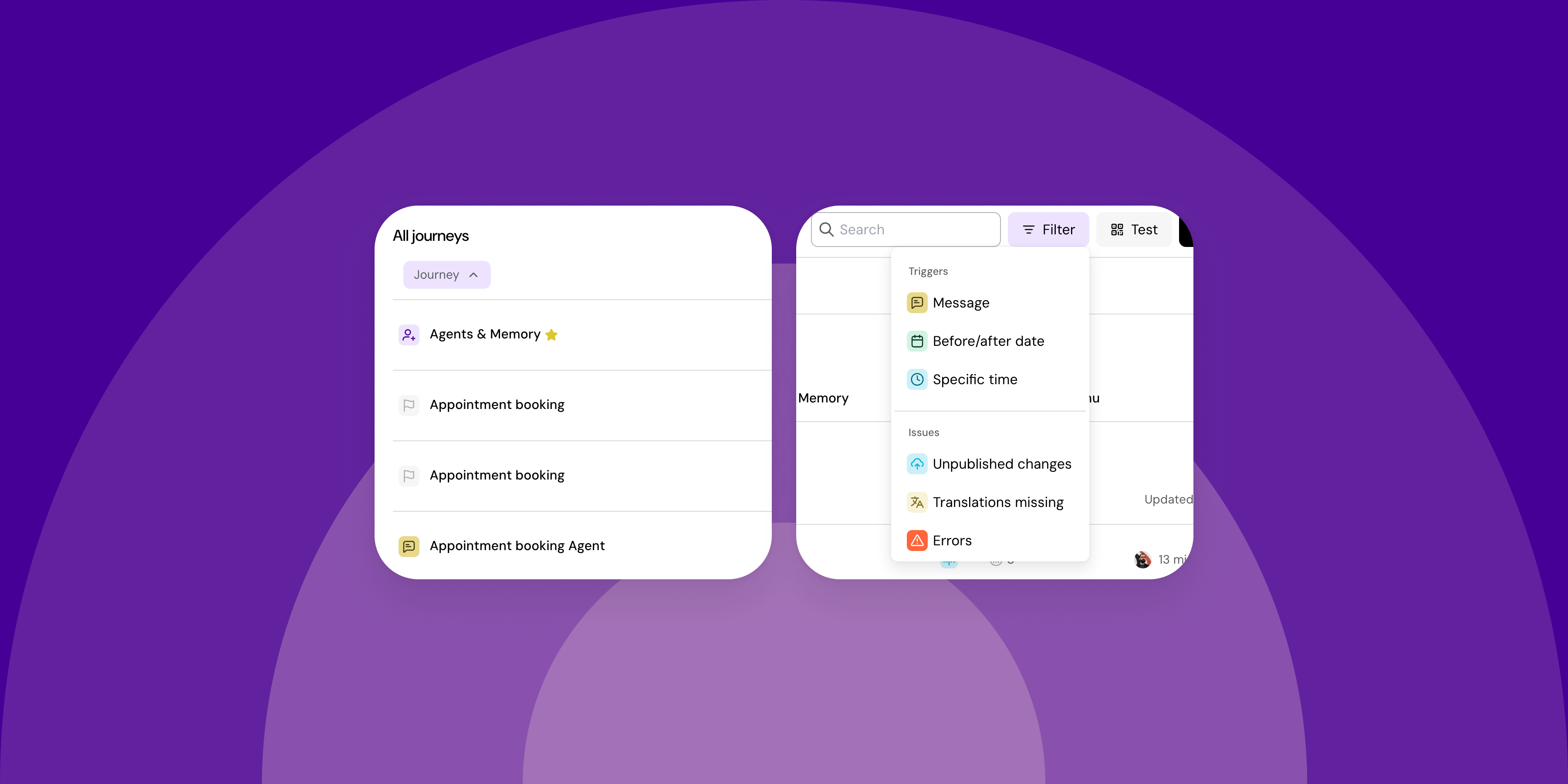 Warnings now stand out. You'll see clear indicators when a journey has errors, unpublished changes, or missing translations. This is especially important in healthcare, where incomplete localizations or broken flows can cause disruptions to your service.