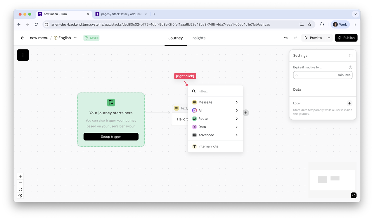 We’re continuing to expand the canvas with powerful new capabilities. This update introduces additional cards - with even more on the way. To keep the menu clear and easy to navigate as it grows, we’ve reorganised items into logical groups. You’ll now find cards and actions neatly categorised under Message, AI, Route, Data, and Advanced.
