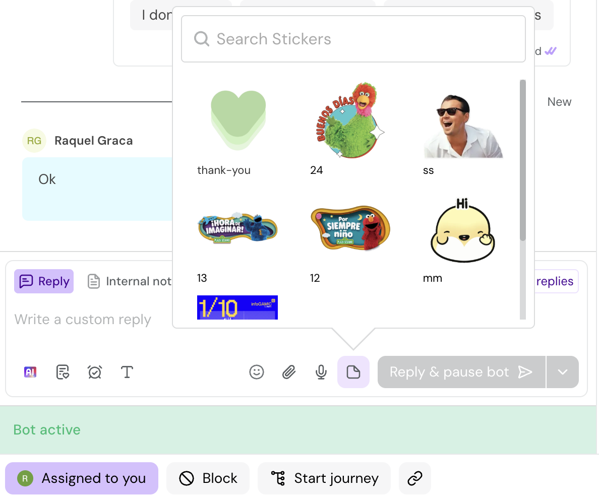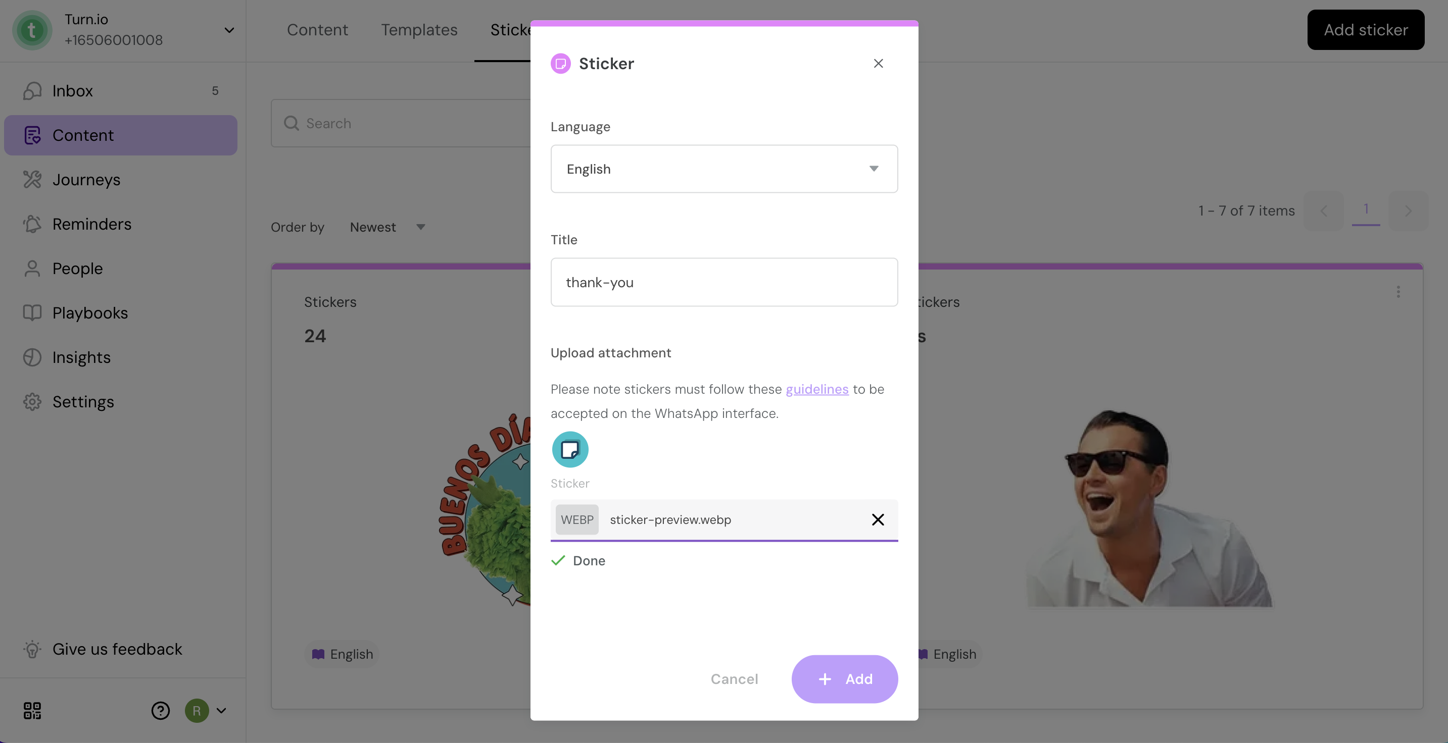 Stickers are a fun way to make your service content more engaging and colourful. With Turn.io, you can send stickers in two ways: from the Inbox or within a Journey.