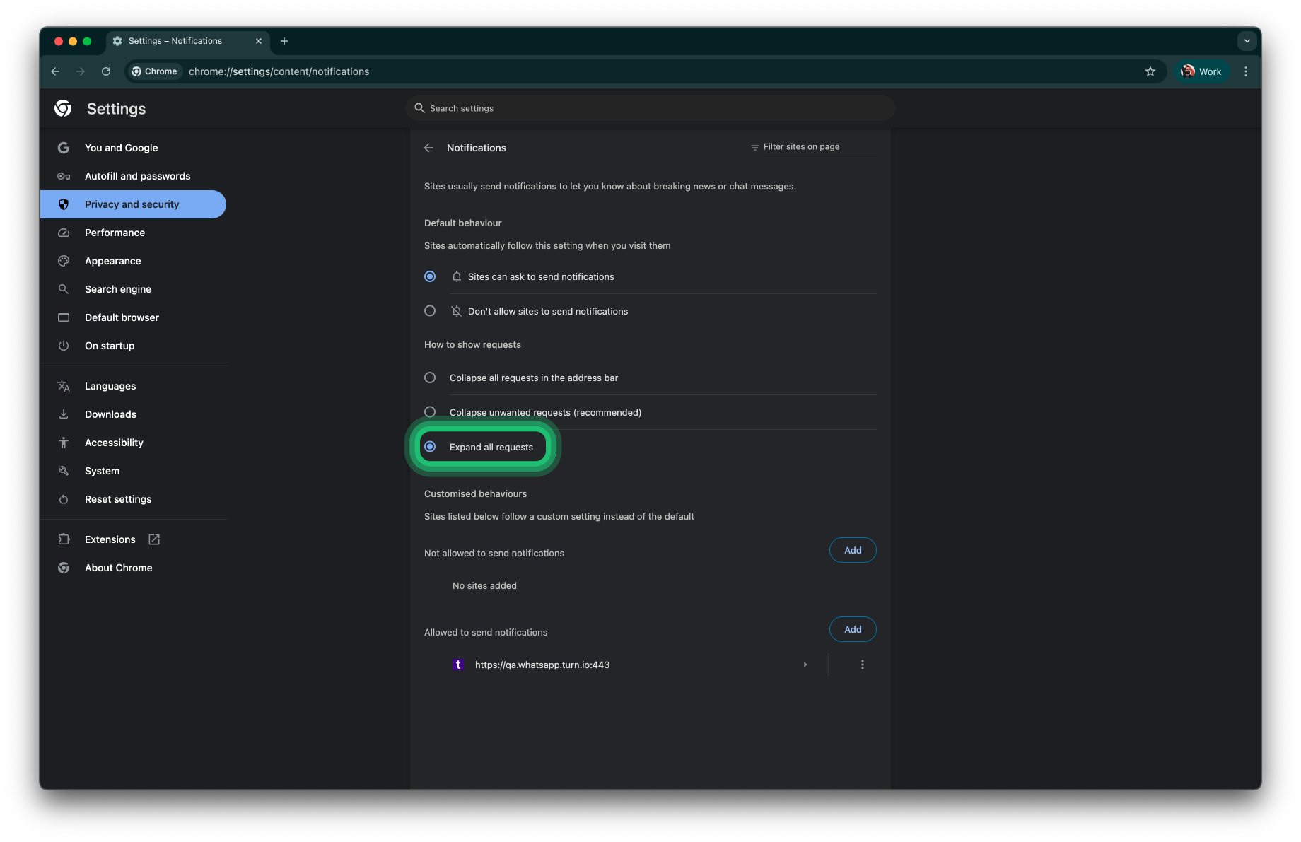 Depending on your browser, you might need to change how it delivers notifications. On Chrome, head over to Privacy and security > Site Settings > Notifications > How to show requests and turn that to Expand all requests.