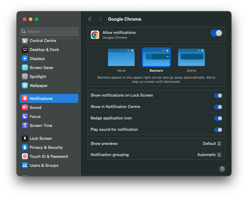 And done! Now, anytime you're on a different tab in your browser, or looking at a different app, you'll see a system banner and hear a little sound (pop).