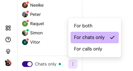 Now, we're giving your operators full control of what they're available for: chats, calls, or both.