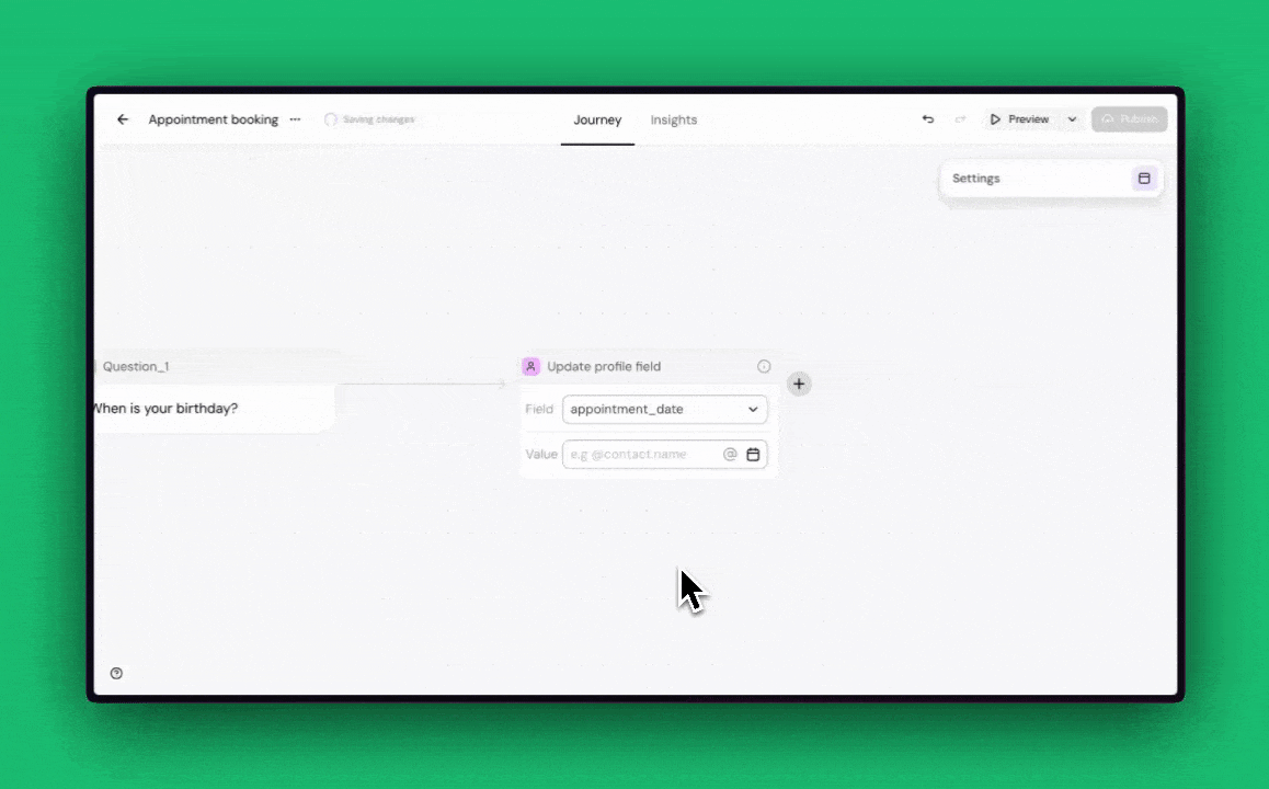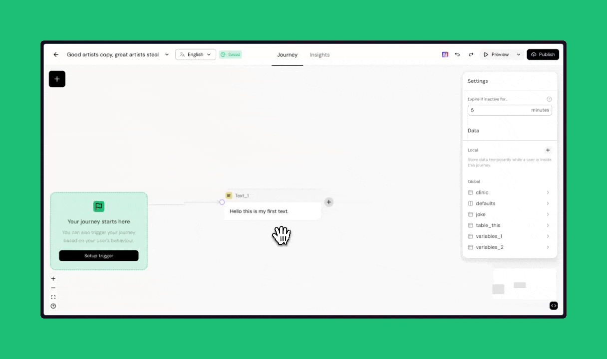 A collection of improvements that make building smoother: toggle controls, delay functions, expressions in profile fields, data passing between journeys, friendlier card names, and smarter copy-paste. Small changes, big impact.