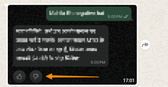 What are the thumbs up/down buttons on WhatsApp business messages?