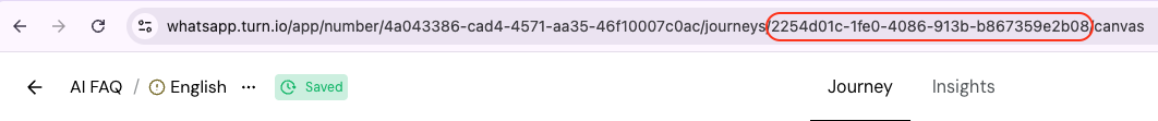 - Open the journey you want to test and copy the UUID from the URL (