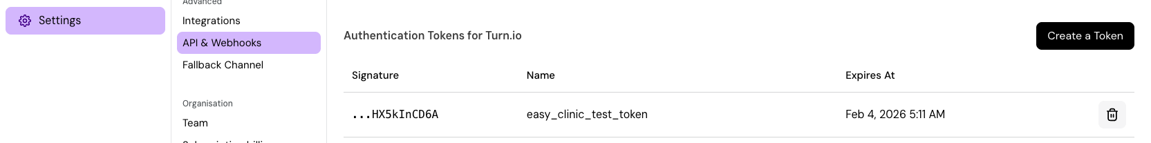 - Head to Settings → API & Webhooks in Turn and create an API token. This is the Bearer token Maxim will use.